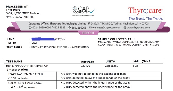 Patients Report: Initial Viral Load: 9.4 Lakh
